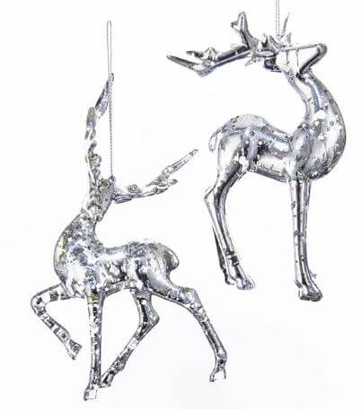 Plastic Silver Reindeer Ornaments 6″