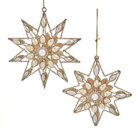 These Platinum Snowflake With Pearls Ornaments are a sophisticated and luxurious addition to your holiday decor that adds a touch of elegance and winter wonder to your seasonal celebrations. These exquisite ornaments feature two assorted snowflake designs, each meticulously crafted to showcase platinum-colored snowflakes adorned with lustrous pearls, creating a sense of opulence and enchantment.